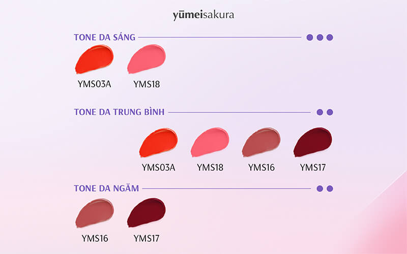Dù bạn thuộc tone da sáng, trung bình hay ngăm, Yumeisakura đều có sắc son tôn lên khí chất riêng, để mỗi cô gái đều tỏa sáng theo cách của mình.